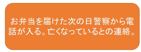 玄関先で座ったまま亡くなっていたということで、横にお弁当があったそうです。