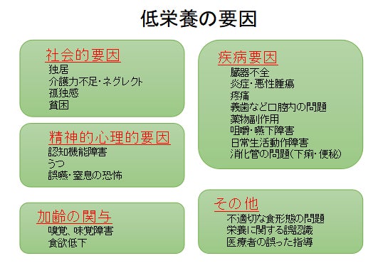 ここで低栄養のお話を書いてみます。低栄養と言うのは 何らかの理由で食事が十分に摂れず栄養状態が悪くなることを言います。