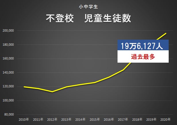 現在、日本では不登校の小中学生が19万人以上いて、その人数は過去最多となっております。