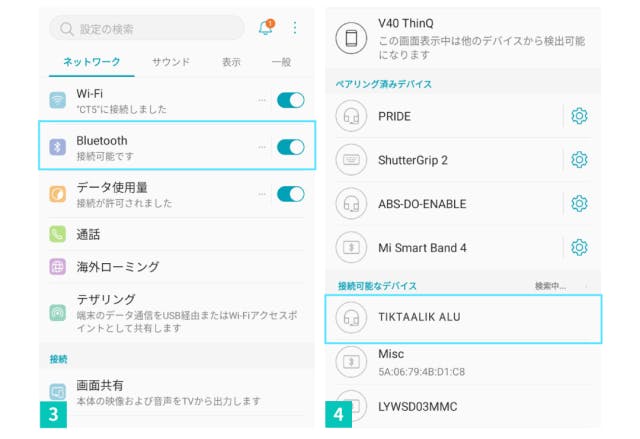 4. 使用(接続)可能なデバイスにTIKTAALIK ALUが表示されます。