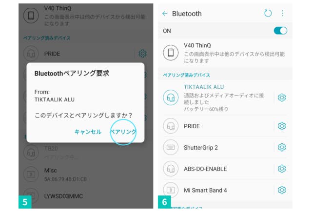 初めてBluetooth接続をするデバイスは、最初のペアリング接続が必要であり、一度ペアリングしたデバイスは再びペアリングする必要はありません。