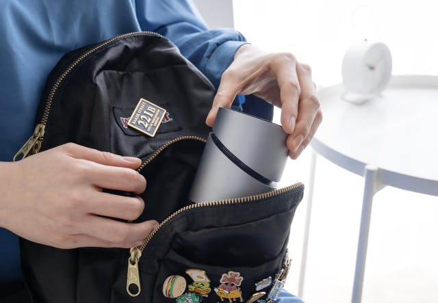 スピーカーの正面だけでなく、どの方向から聴いても偏りがありません。また、コンパクトなケースでも強力な5W出力を実現し、ケースの中心から外側に360°に広がる豊かなサウンドを感じられます。
