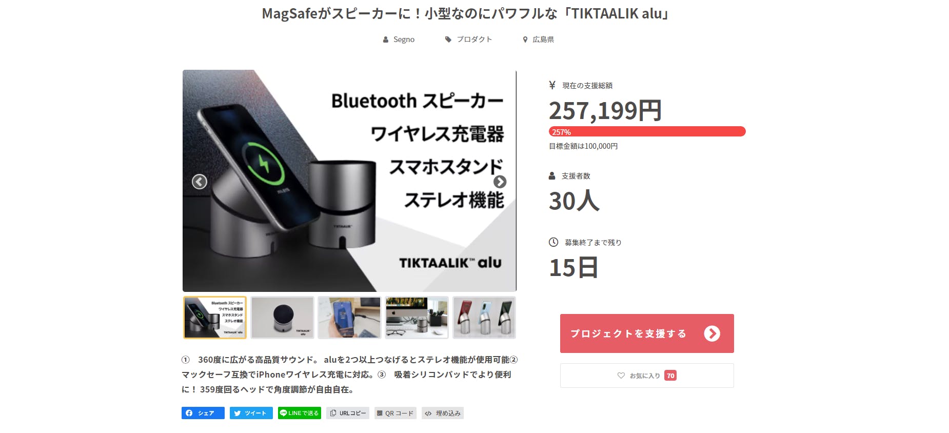 お陰様でたくさんのサポーター様にご支援いただき、目標金額の257%を達成することができました!