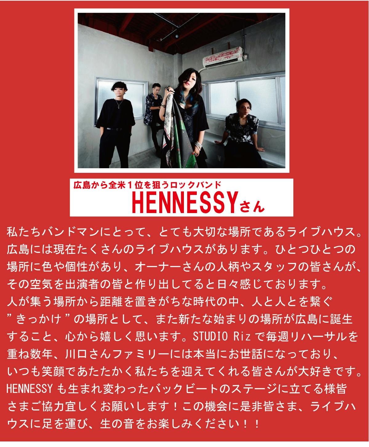 広島で活動中のロックバンドHENNESSYさんから応援メッセージをいただきました!