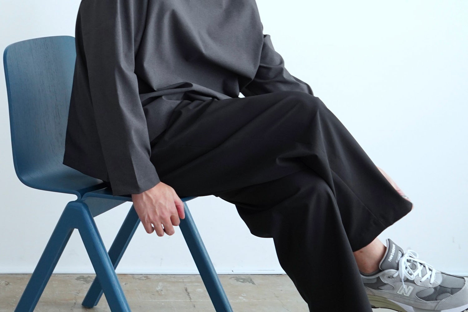 リモートワークが長く続く中で、今まで苦手だったワイドシルエットのパンツをいくつか履きました。たしかにスリムパンツよりは、少しゆったりしている方がリラックス感があり心地が良いと感じます。今後、リモートワークとオフィスワークのハイブリッドスタイルを見据えて、どこで、誰に会っても印象を悪くしない大人なワイドイージーパンツを作ろうと考えました。