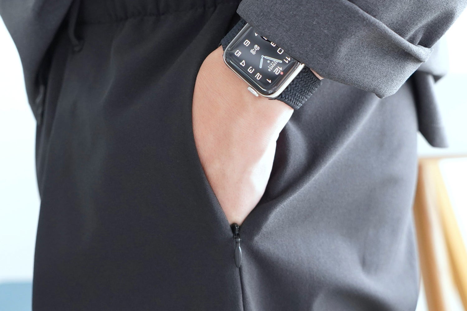 サイドポケットは、前作のMinimalist Easy Pantsよりポケット口を若干大きく変更しました。これにより、ポケットの出し入れがしやすくなり、さらにコンシールファスナーをつけることでセキュリティ性を向上させています。
