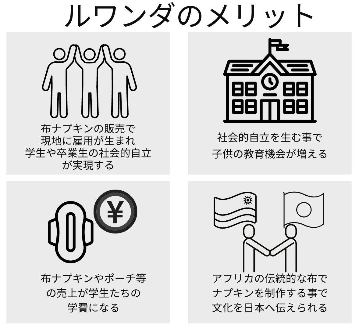 今回のプロジェクトで得られた資金は、布ナプキン制作の準備のため活用されます。布ナプキンはお肌の敏感な部分に直接使用するため、清潔な水で洗う必要があり、現段階ではルワンダでの布ナプキンの使用は難しいですが、将来的にルワンダの水が清潔になった際には、ルワンダ現地でも布ナプキンを普及していきたいと次への目標も抱いております。