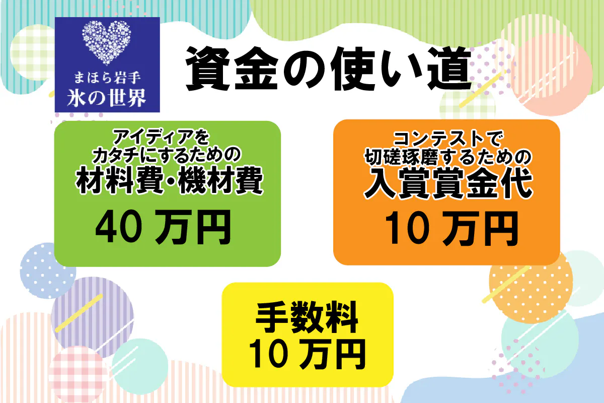 2021/11/30 09:20皆様、こんにちは!この度はたくさんの支援をいただき本当にありがとうございます。温かいお言葉を頂戴するたび、「絶対イベントを成功させよう!薮川だからこそ、学生だからこそ表現できる氷の世界を作ろう!」という気持ちになります。ここ2週間ほど、このプロジェクトのこと、クラウドファンディングで応援してくださっている方々の存在について各学校さんに説明に上がっていました。そしてついに、協力団体様が決定!まだまだ募集中ですが、途中経過をご報告します。①学校法人誠桜学園 盛岡誠桜高等学校様イベント期間中不定期にて、薮川地域の食材を使用した「高校生レストラン」を開催します!②岩手県立盛岡商業高等学校様 岩手県立盛岡北高等学校様プレオープン期間中写真講習会をまほら岩手にて開催し、プロから技術を学んだのち、イルミネーションなどの施設で撮影した写真を提供してもらい、イベントのプロモーションに使用します③MCL盛岡情報ビジネス&デザイン専門学校様専門学生ならではの目線で、地域課題と各自の得意分野を結びつけながら、新たな地域おこしの糸口を探ります。具体的には、映像やイラストを活用したアートの展示を予定しております。皆様の支援が、学生の手にわたって、たくさんの方々が薮川地域に訪れ地域おこしにつながる。徐々にですが、プロジェクトが進みつつあります。これからの学生の活躍に期待です! もっと見る