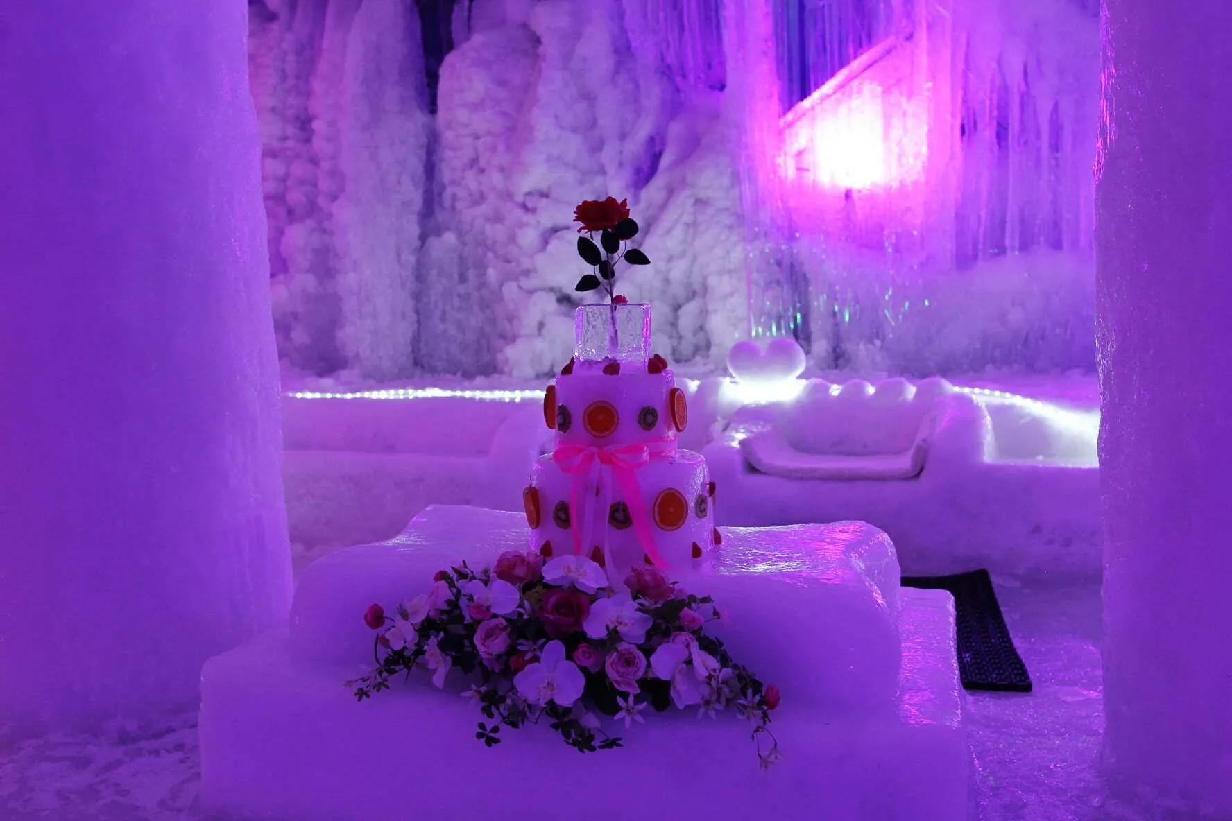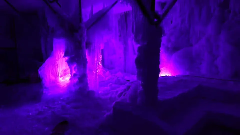 ・幻想的な氷の洞窟内部で、製作した映像を放映して空間アートに!