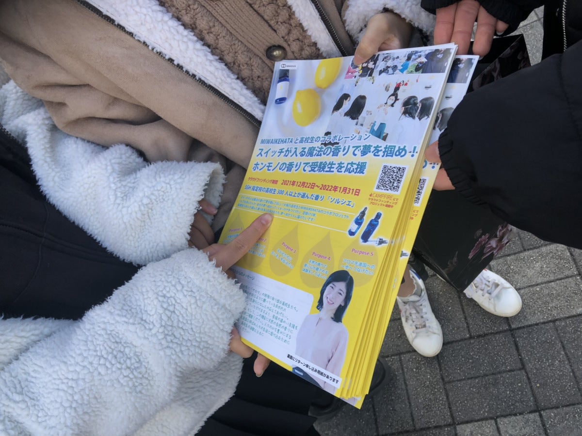 たくさんのご支援ありがとうございます!昨日1/27に、支援者120人を超えました!支援の輪がどんどん広がり、「楽しみにしてます!」「応援してます!」とたくさんのお声がけをいただき、本当にありがとうございます。改めて皆様の温かいご支援・ご協力に感謝申し上げます。早いもので、プロジェクト期間の終了が近づいてきました。残りあと3日!1月31日までとなります。たくさんの学生に香りでつながりを感じてもらえますように・・・受験生のやる気スイッチの手助けができますように・・・コロナ禍のストレスが少しでも癒えますように・・・天然のホンモノの香りが伝わりますように・・・高校生のチームと一緒に、たくさんの想いを込めて、このプロジェクトを進めてきました。あと少し、150人を目指して最後の応援・ご協力を宜しくお願いいたします!