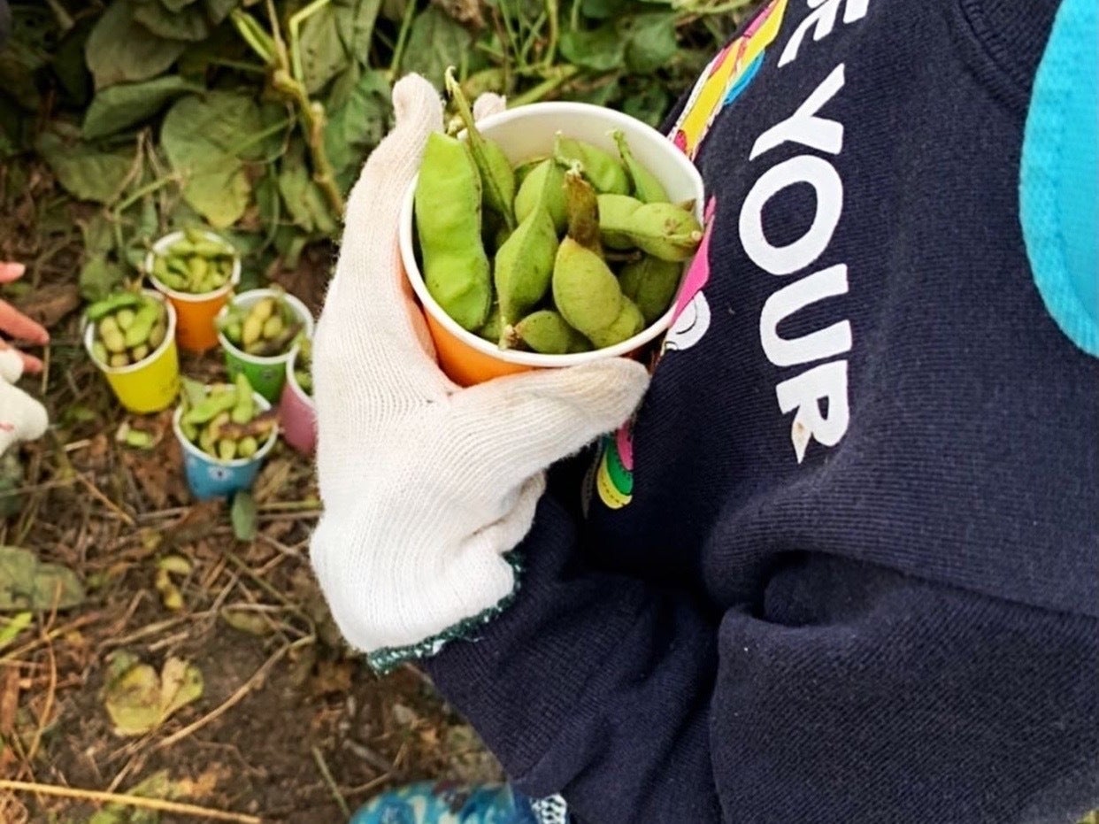 この支援をきっかけにご縁が生まれ、子供達が実際に枝豆の収穫体験に来てくれました。