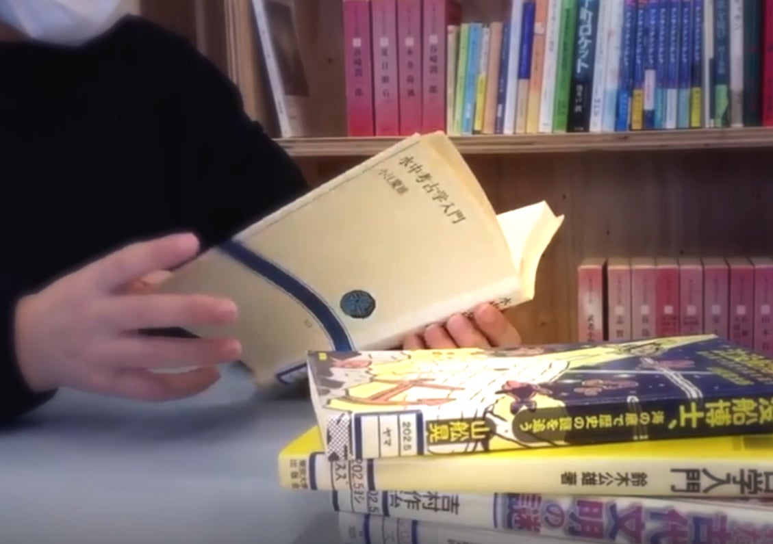 ある昼休み、いつものように本棚の間をゆっくりと歩きながら本の背表紙を見ていた時、「うみ」が広がっていたのです。歴史と海が好きだった私は水中考古学というタイトルにどうしようもなく惹きつけられました。