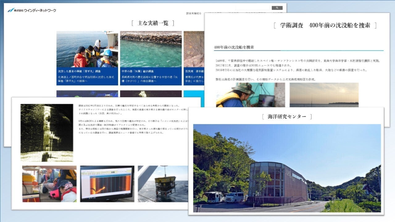 海洋調査会社ウインディーネットワークは、幅広い専門知識、最先端技術を開発・研究・習得しており、学術調査、工事用計測、水産漁業用調査、ダム堆砂測量、水中考古学等、多くの分野で活躍しています。サイドスキャンソナーや磁気探査など様々な探査機器を保有し、また独自技術の開発も行なっており、様々なプロジェクトを通して学術調査や町おこし事業などにも協力しています。丹後の調査では、様々な水中探査技術のノウハウを考古学者に提供します!