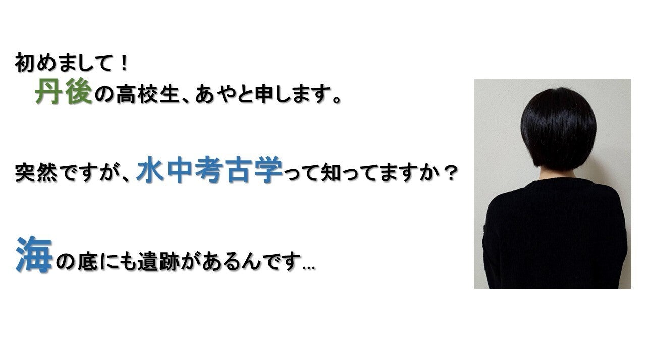 このプロジェクトは、高校生の私が「水中遺跡を探す」というものですが、最初にどうやってこのプロジェクトが誕生したか、お話させてください。