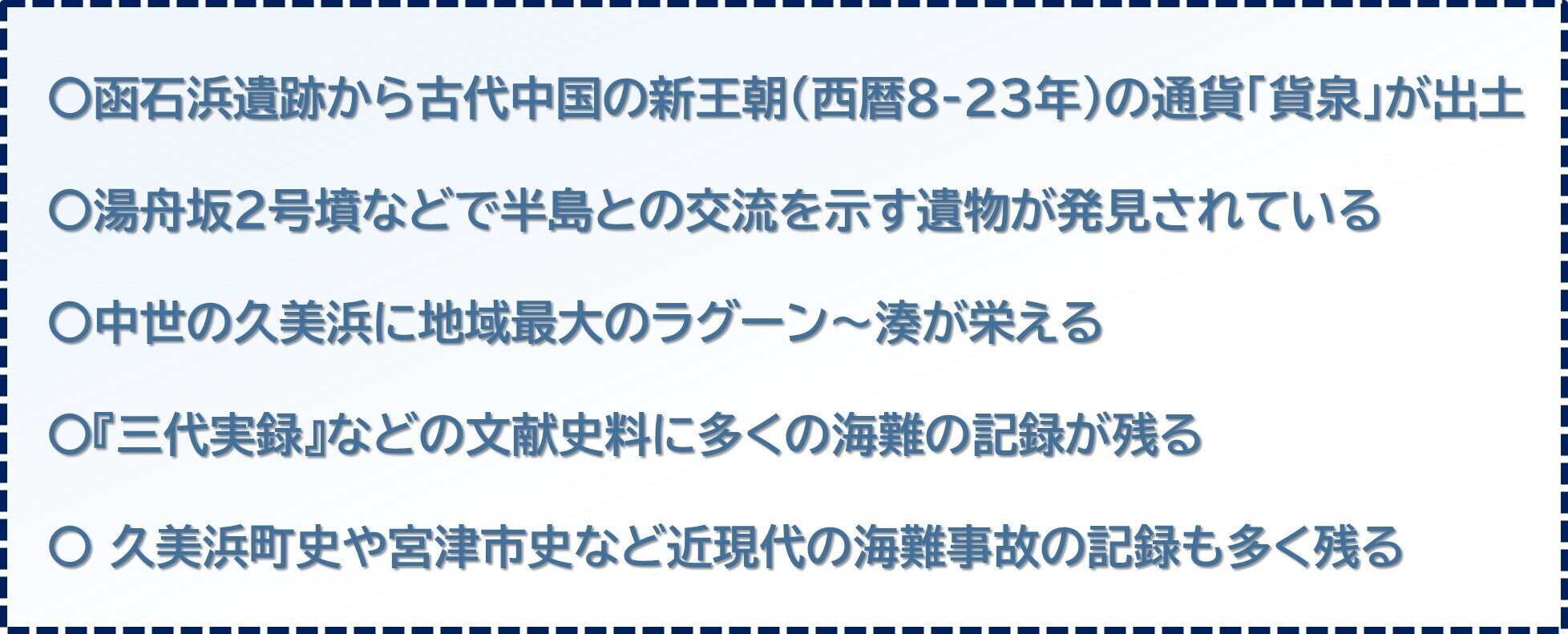 ●どうして丹後?何があるの?~丹後の歴史は海とのつながりが深い。でも、水中遺跡の調査はほとんどおこなわれたことがない!まだまだ未知の遺跡がたくさんあるはず!