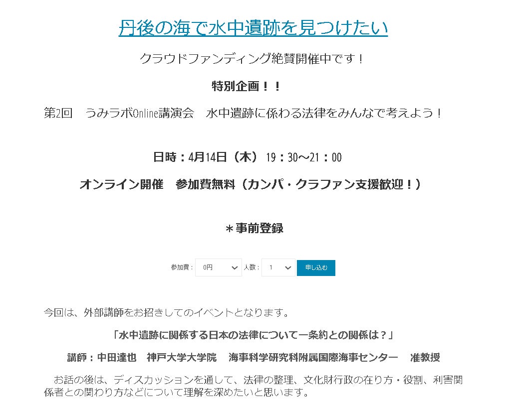 4月14日(木) 19:30 開始 水中遺跡の係わる法律をみんなで考えよう!