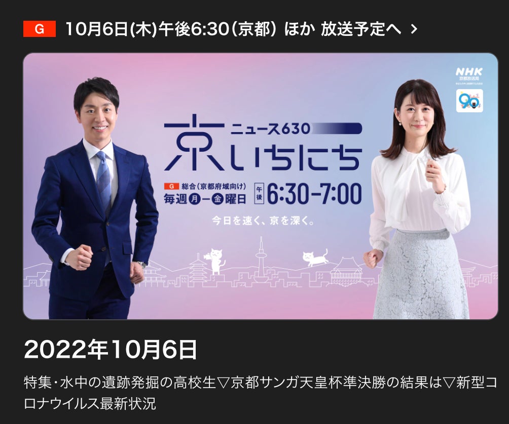 NHK京都放送「ニュース630 京いちにち」の中で8分ほど放送(京都地域のみ)