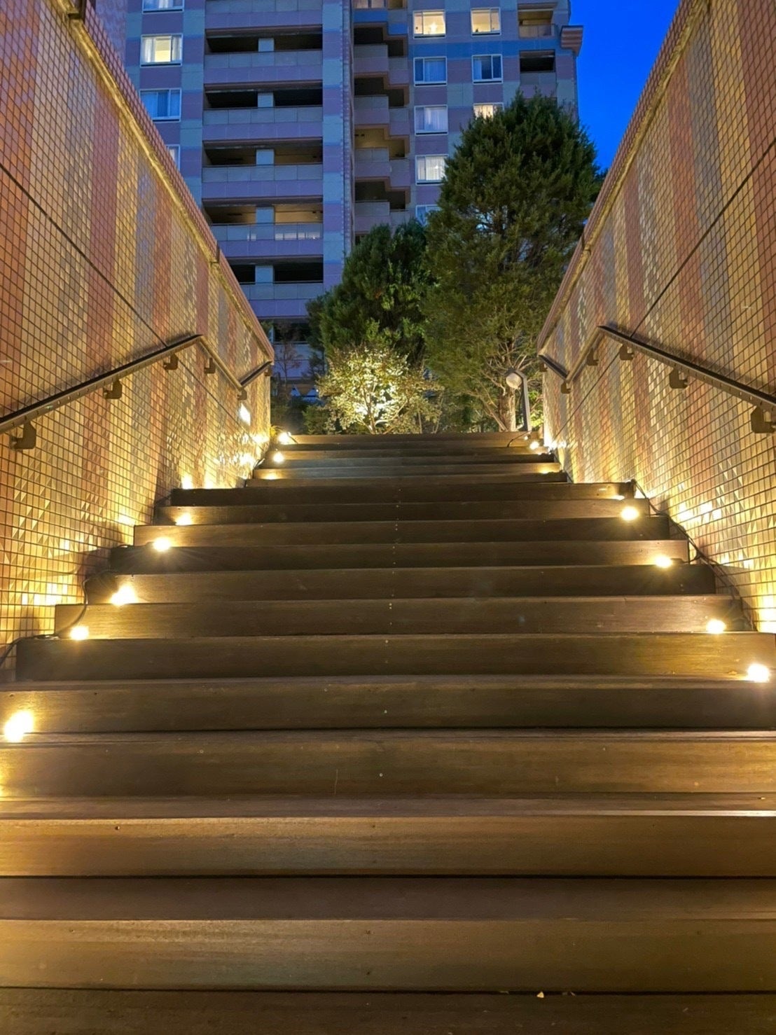 今回、初めてIN THA DOORさんのお店に行ったのですが、店へ続く階段のライトアップが素敵で、とてもわくわくしました。