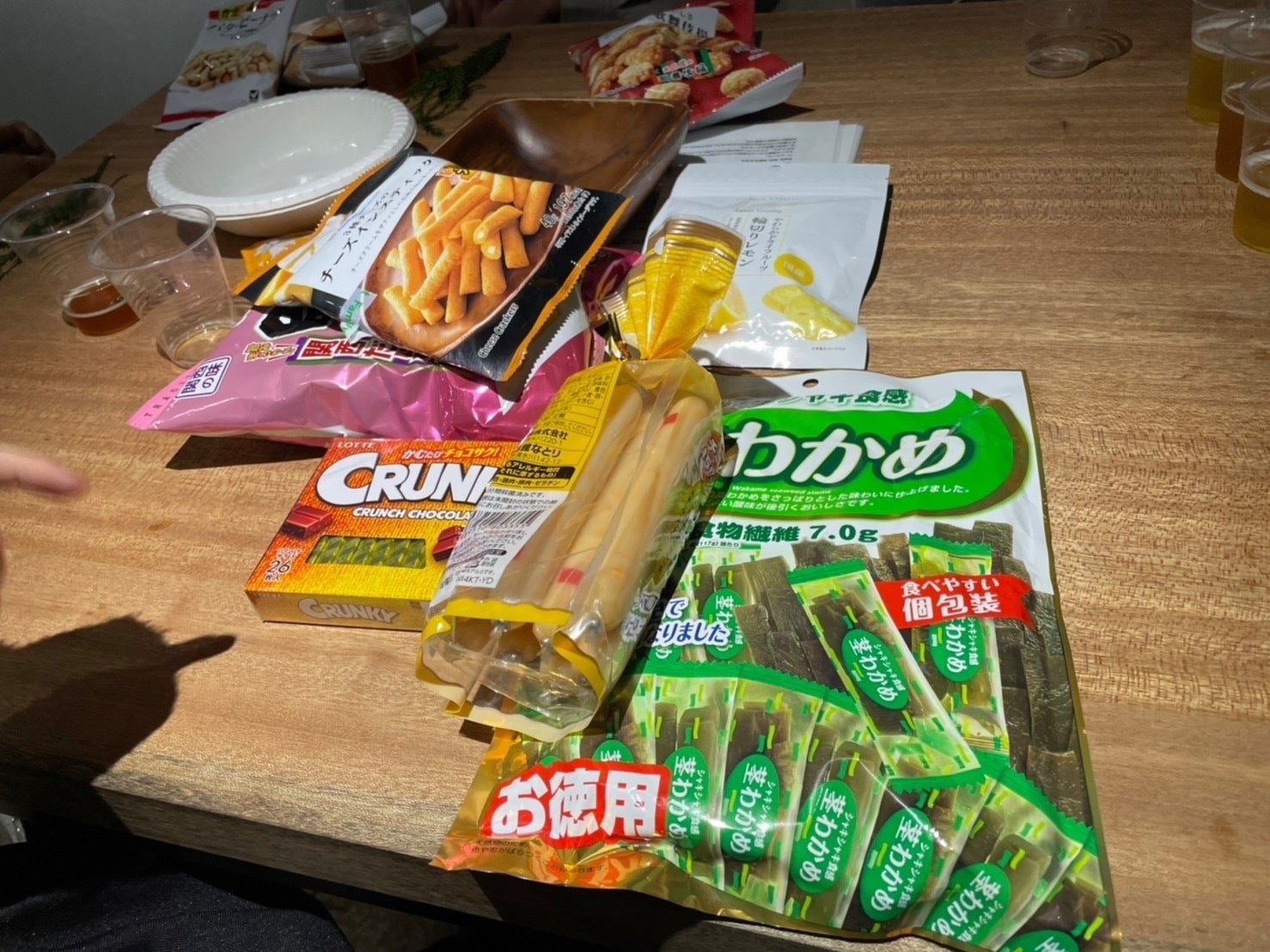 では、各自持ち寄ったおつまみを広げていきます!ラインナップはこちらです。