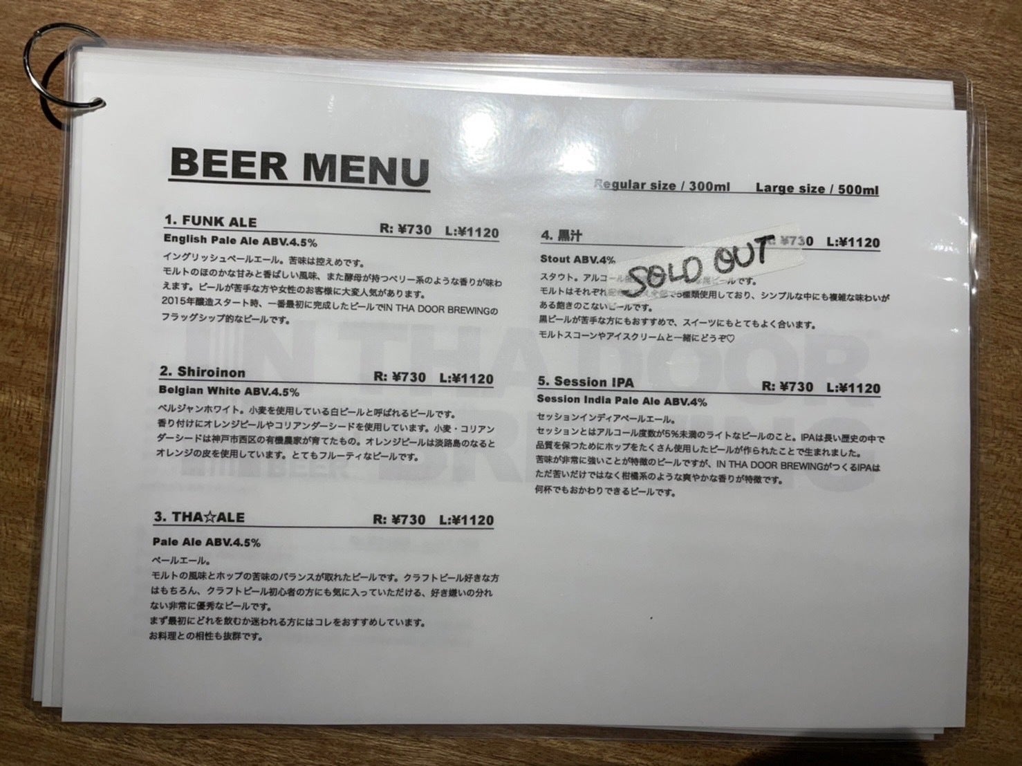 写真の手前から、FUNK ALE、Shiroinon、THA☆ALE、Session IPAという名前のビールです。