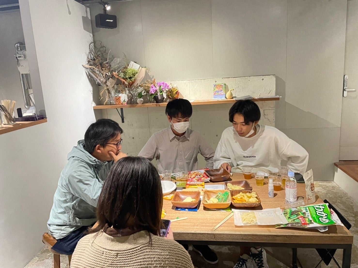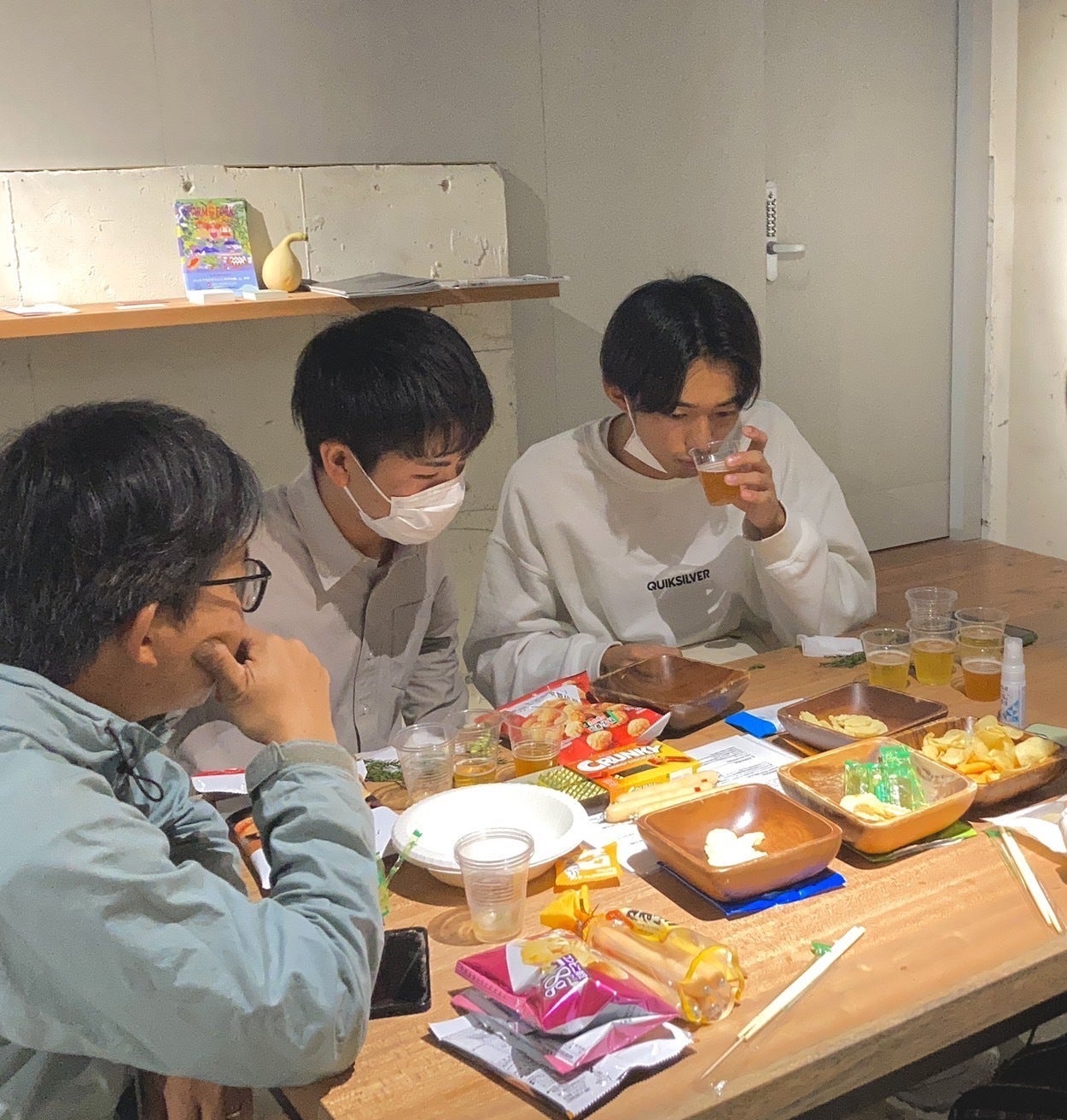 この会は、毎週月曜日に大学で実施している、「定例会議」で決定した案で、学生たちがクラウドファンディングに支援してもらった方々へ、杉の葉ビールに合うおつまみをおもてなししたいという考えで実施されました(^▽^)/