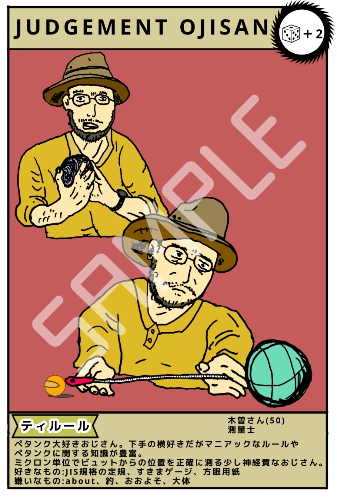 お向かいさんの近所に住むペタンク大好きおじさん。ペタンクのマイナーなルールまで熟知している。元々細かい性格だったが、ペタンクを始めたある日突然物の距離が見ただけで分かるようになった。