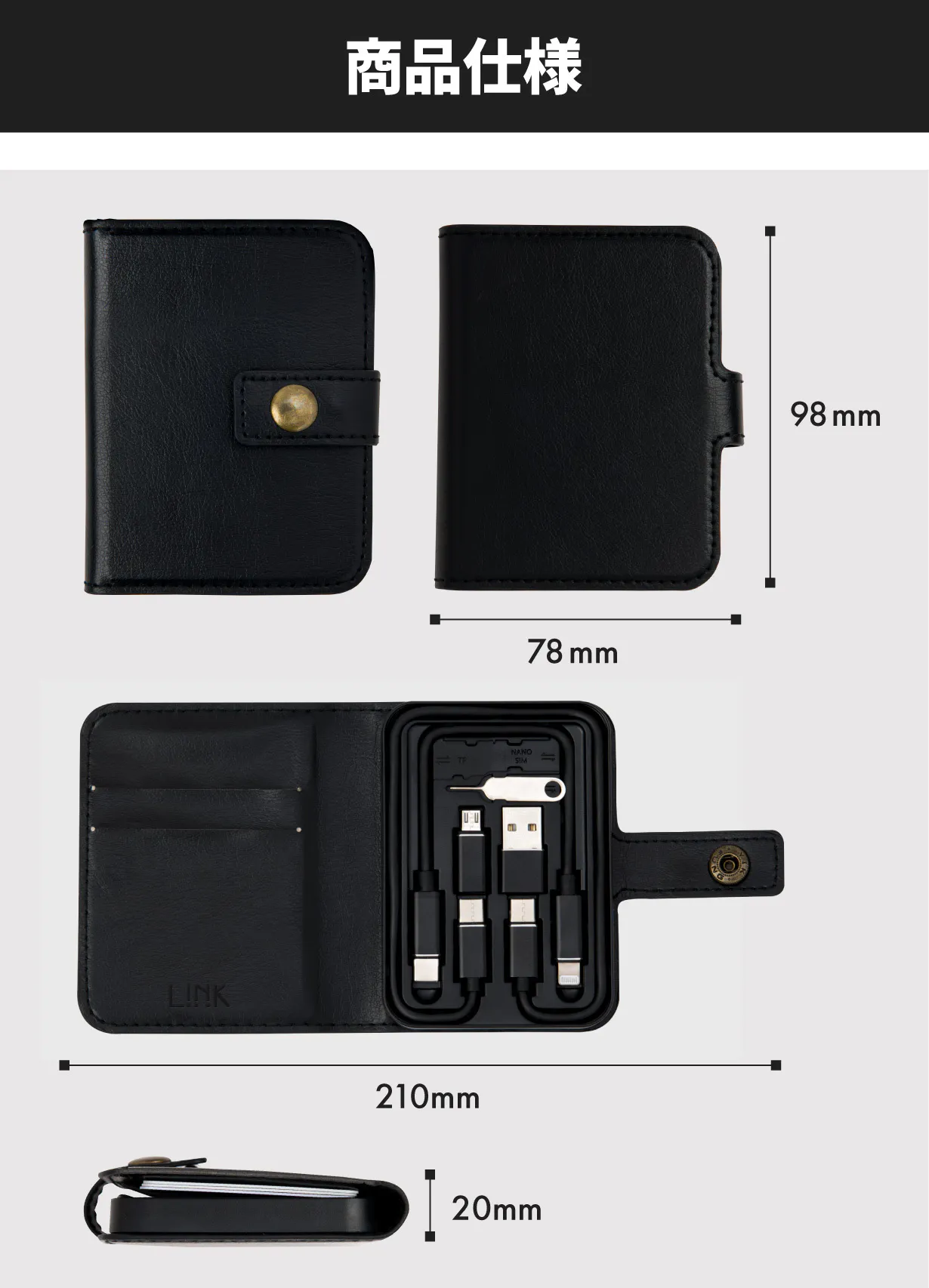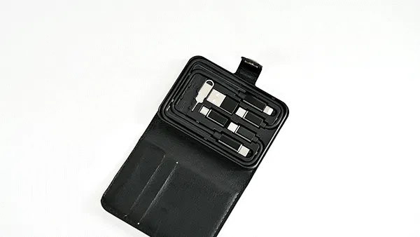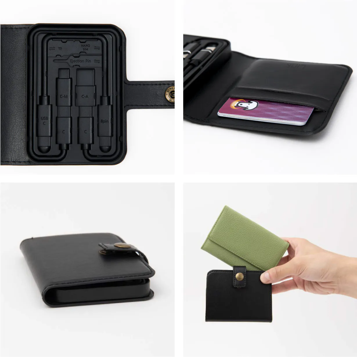 1 枚のカードケースに 6種類の充電ケーブルが入っている、