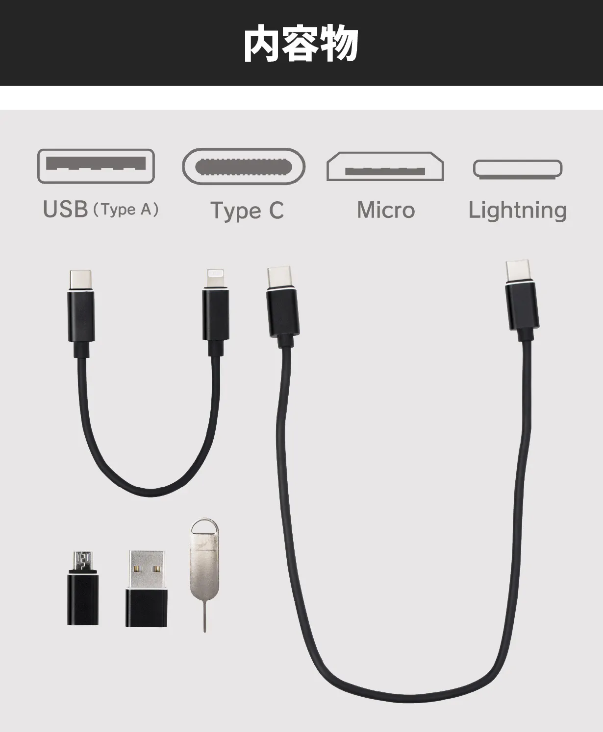 Lightning ケーブル と Micro USB ケーブルについては、アウトプット(出力)のみになります。