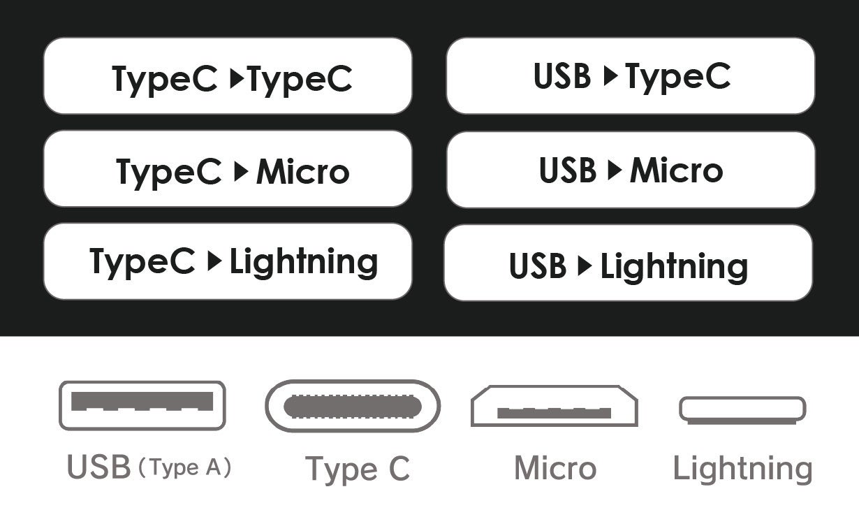 Lightning ケーブル と Micro USB ケーブルについては、アウトプット(出力)のみになります。