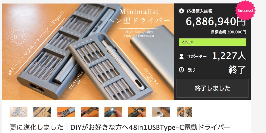 また、DIY工具中心でプロダクトを紹介しており、以前に各クラウドファンディングプロジェクトの合計で5000人の支援者を集め、2500万円以上支援金を集金できるようになりました。BRIGHTチームの代表プロジェクトは以下↓です。