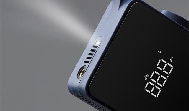 暗い場所や晴天環境でも空気圧や充填モード、バッテリー残量が一目で確認できます。