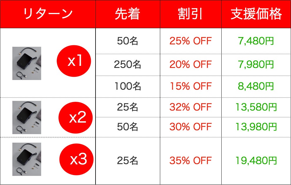 ※想定を上回る皆様からご支援を頂き、量産体制を更に充実させることができた場合、一般販売価格が予定価格を下回る可能性がございます。