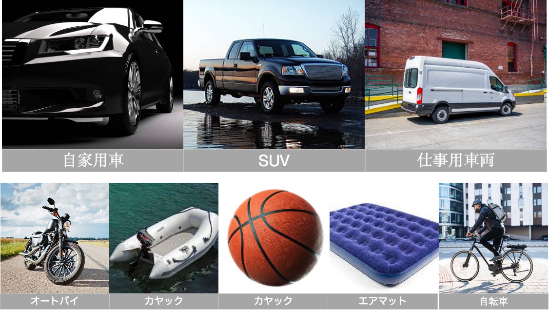 トラックやバスのタイヤ、カヌー等には対応しておりません。