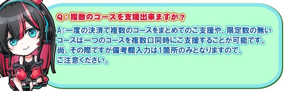 For English version please open here. Due to system restrictions only Japanese texts are shown on the support page. Please check against here before making the support. In particular, all plans involving physical products are not deliverable outside Japan as we do not offer international shipping.