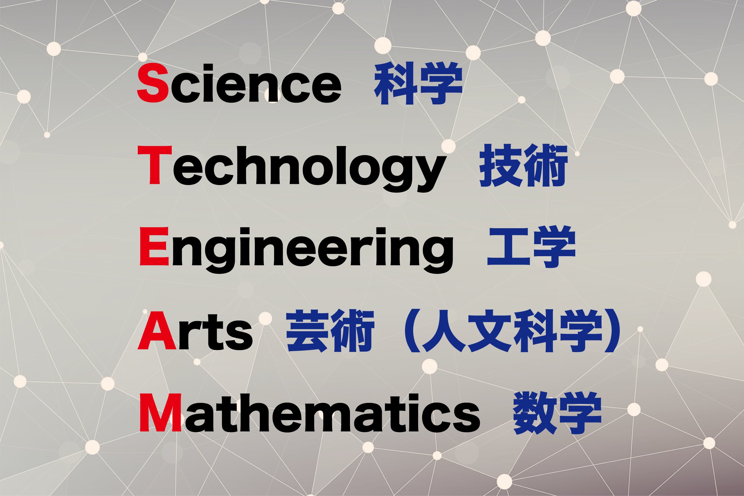 教育として捉えると、私たちが実現したいこのような姿は、一般にSTEAM教育と呼ばれるものに属します。科学技術の発展に重要な「STEM分野」(科学 Science、技術 Technology、工学 Engineering、数学 Mathematics)に、人間的な社会を作るために重要なアート(Arts)の発想を加えた分野横断的な学びです。内閣府は令和元年に策定した「AI戦略2019」において、超スマート社会(Society5.0)で求められる力と教育のあり方として、STEAM教育の必要性を指摘しています。
