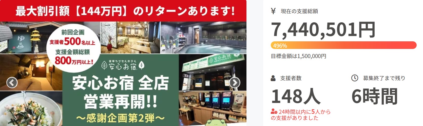 24日間と短い期間だったにもかかわらず、148名の方に温かいご支援をいただき、達成率は500%に迫る状況です。※1月31日 17:00現在