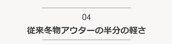 従来の冬用ジャケットでは同じような保温性を引き出すためには厚みが必要でした。1キロ以上するアウターが多い中「フェアリーノヴァ」はHeat Ether®(ヒートエーテル®)を使用しているため、約500gという半分の重量で1キロの製品以上の性能を実現しています。