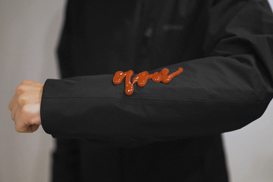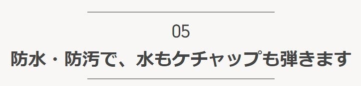表面生地は防汚加工なので、ドロドロしたケチャップなども問題ありません。きれいなまま着続けることができます。