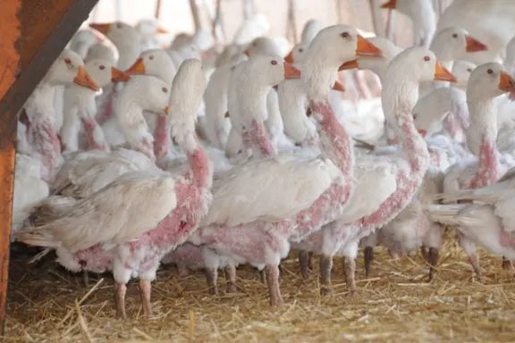 従来のダウンは水鳥の羽が使用されており、1羽から5-10gしか取れず、1つのダウンを作る為に、約30羽分の羽毛が使用されています。本来ガチョウは20~40年、アヒルは10~20年と長命ですが、生きたまま羽毛をむしる、残酷な「ライブハンドピック」が横行しています。ダウン以外の選択肢を