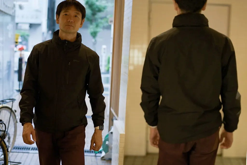 “ Mサイズは私の痩せ型体型で丁度良く、冬は中にニットを、夏は半袖Tシャツなどを合わせています。また撥水機能もあるので小雨の日とかにも軽く着ていけます!”