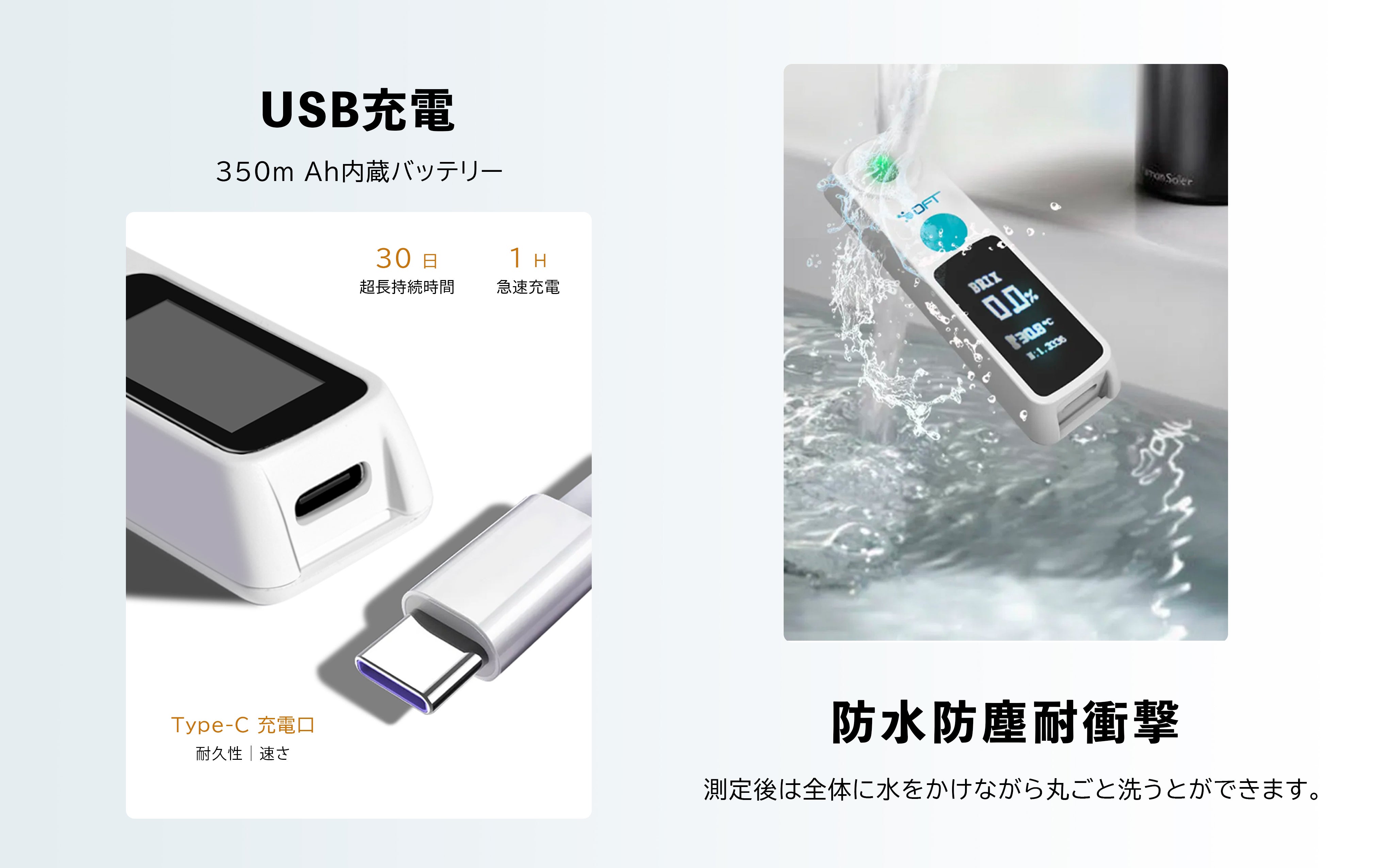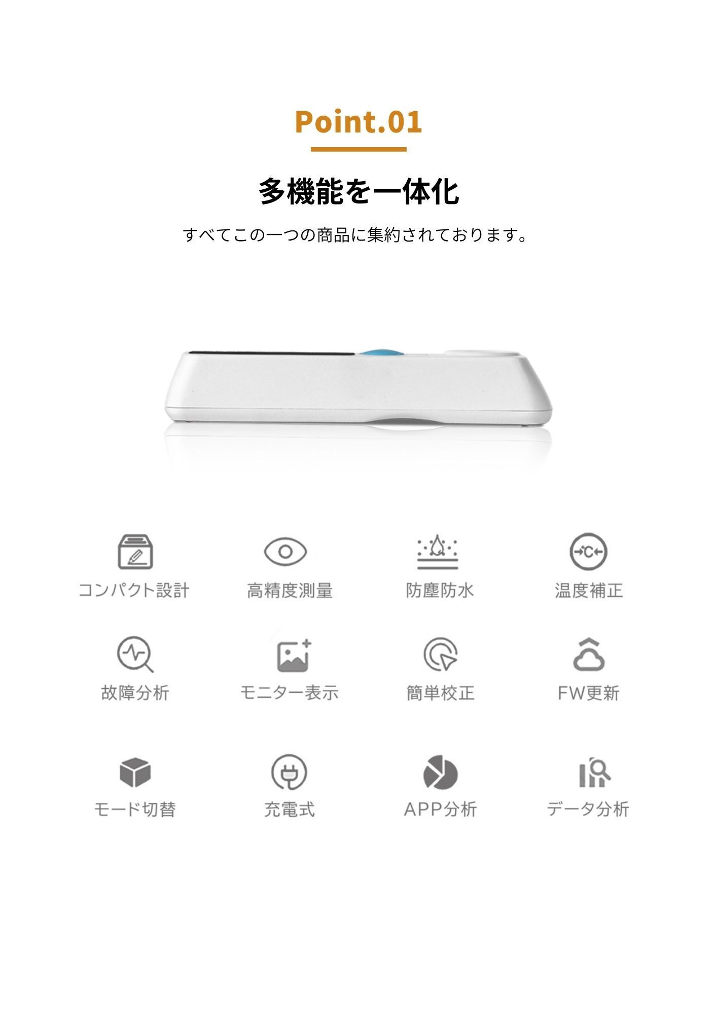 専用アプリ(apple/android)機能により各測定数値のデータログもお手軽管理。防⽔防塵耐衝撃設計なので屋外作業での活用も出来ます。使った後は水洗いもOK。