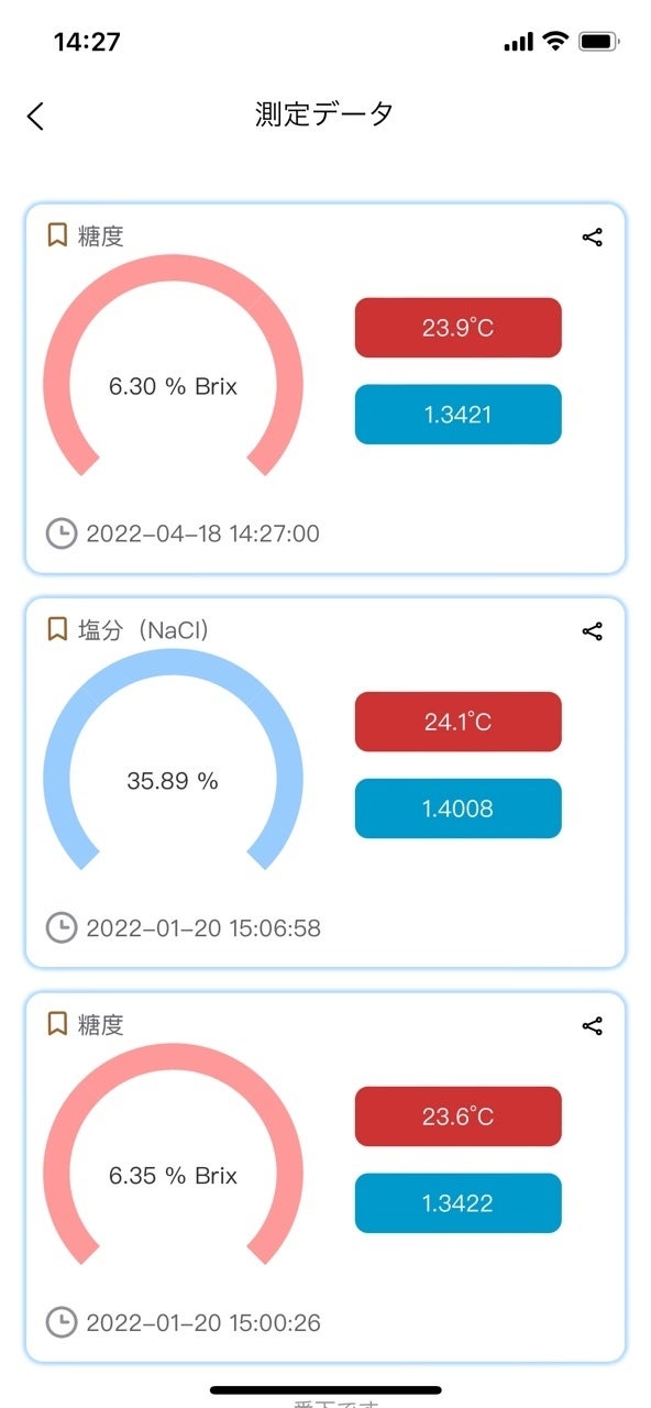 すると測定データが表示。アプリ上の画面を切り替える事で過去の想定データと比較する事も可能。