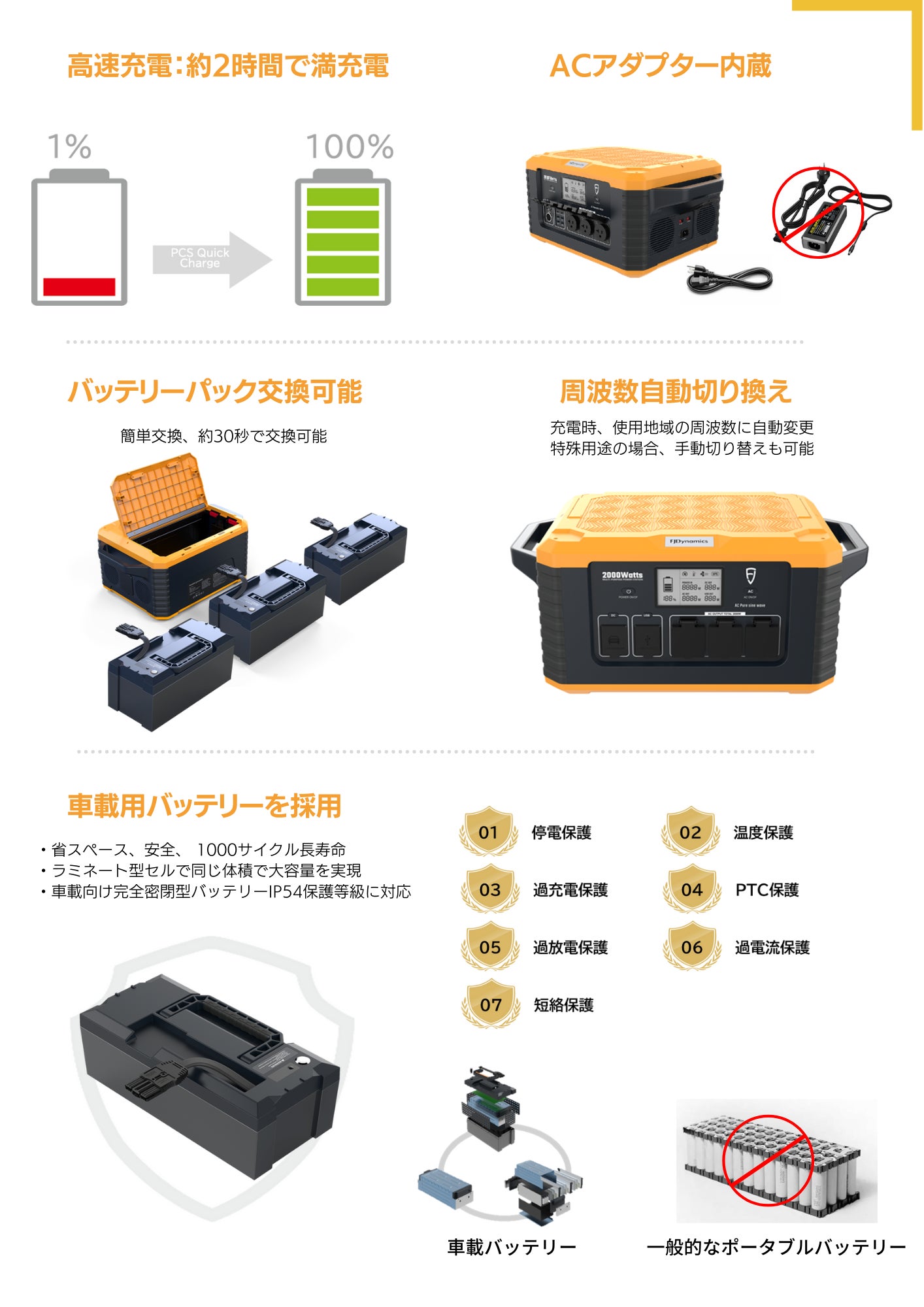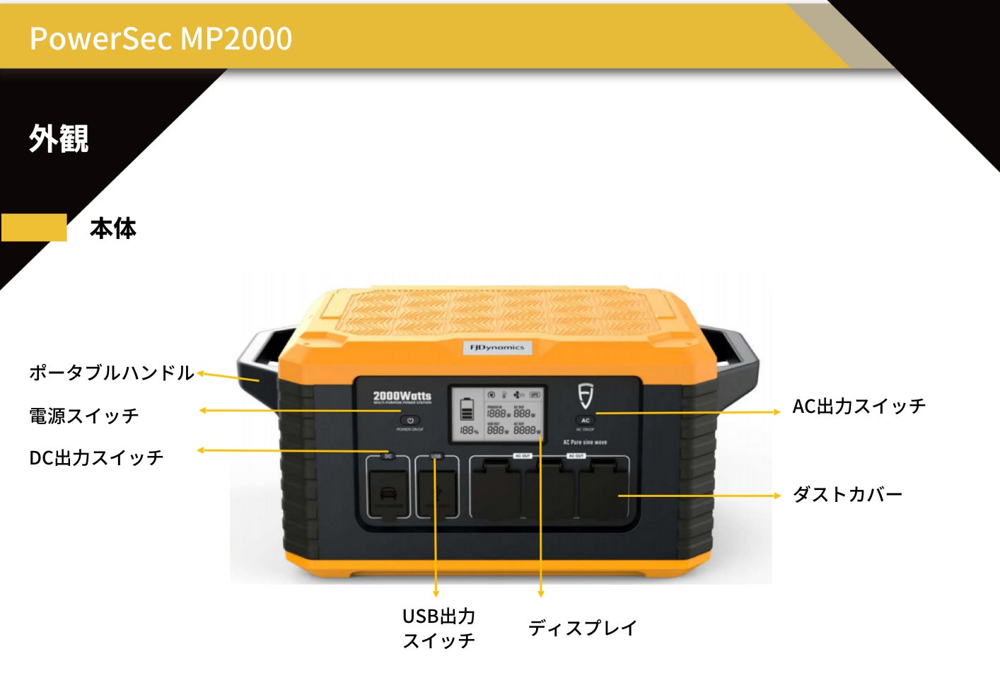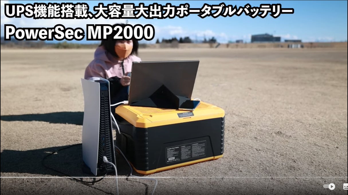 UPS機能搭載、大容量大出力ポータブルバッテリーPowerSec MP2000製品説明