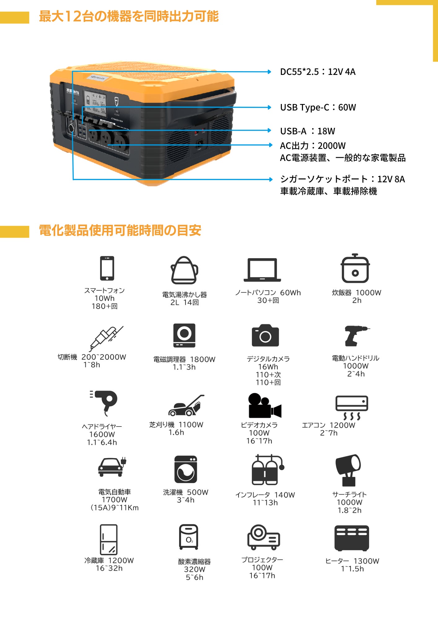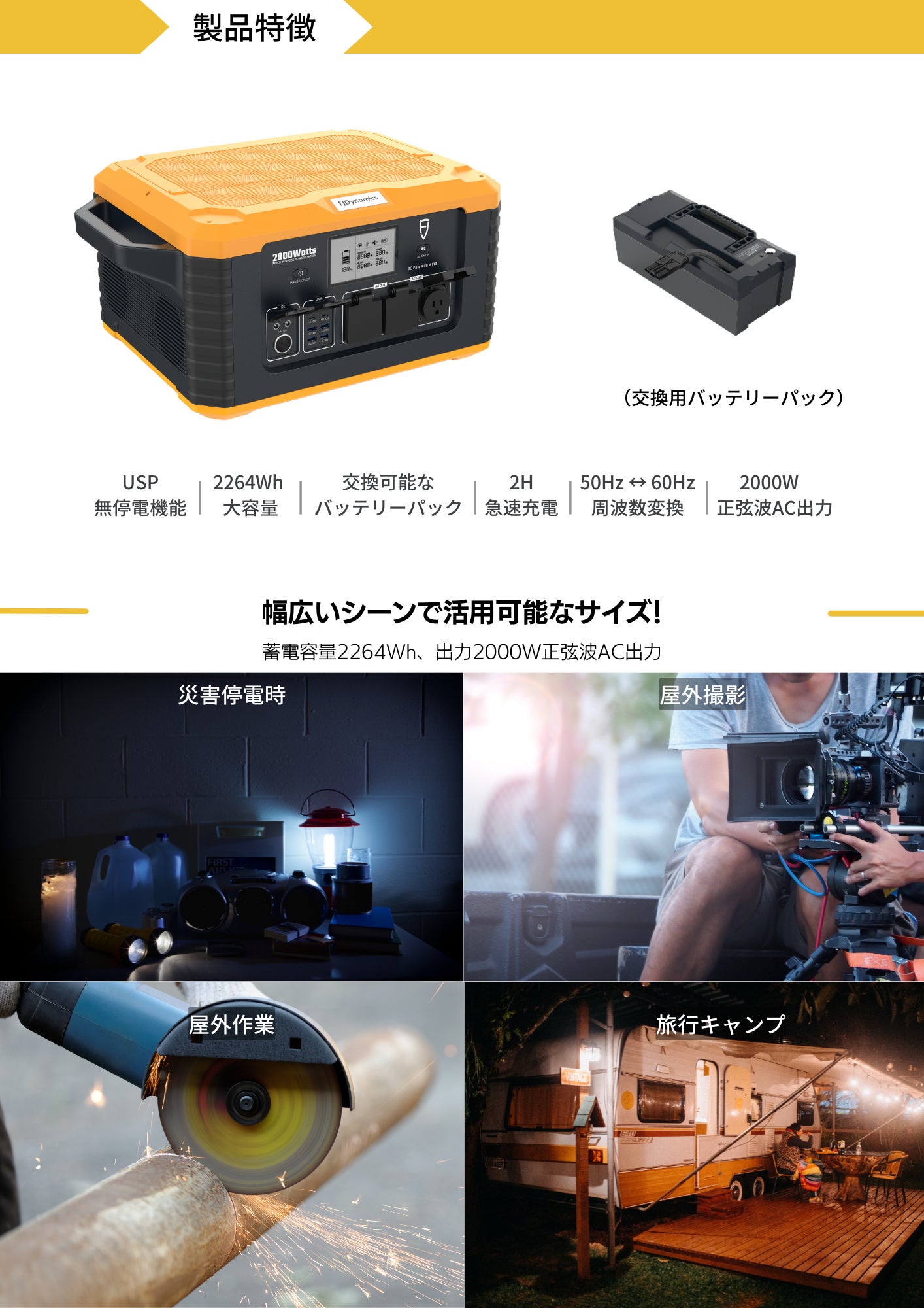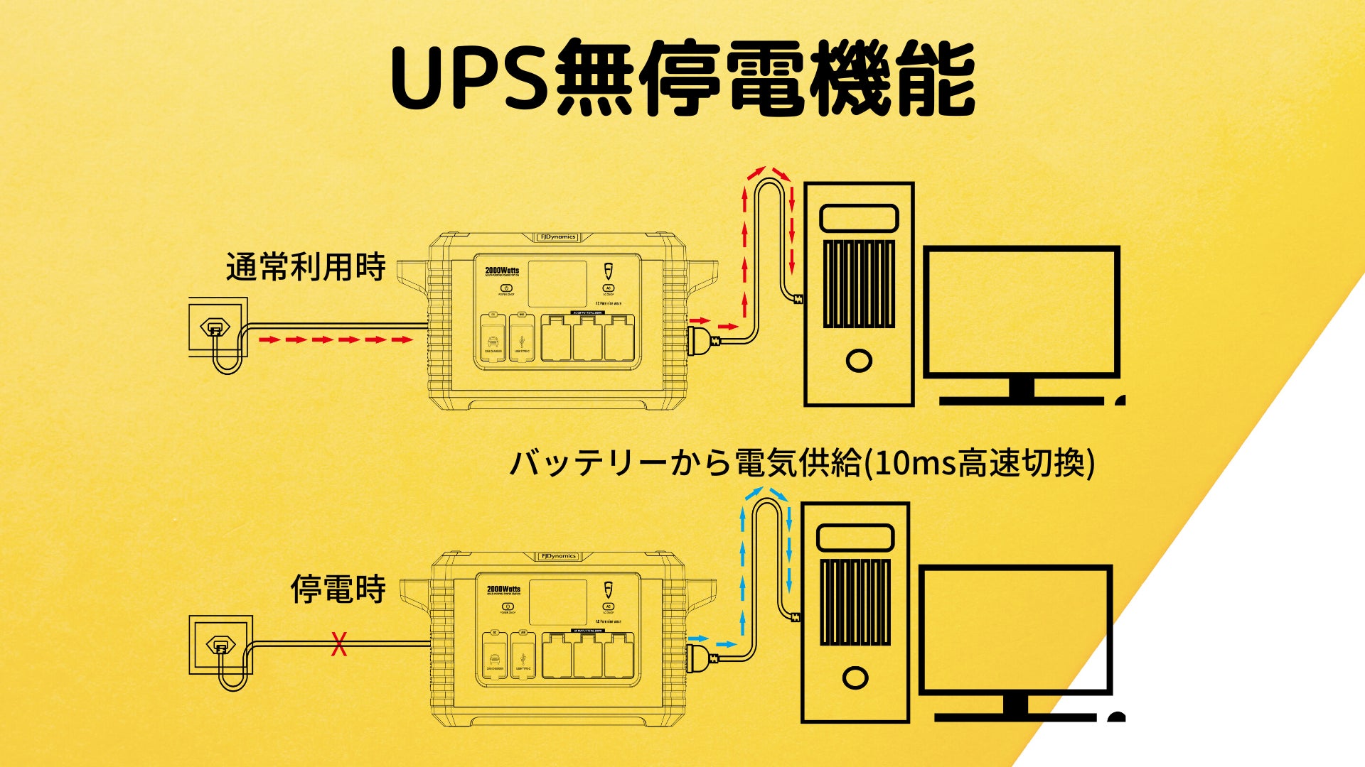 UPS機能搭載、大容量大出力ポータブルバッテリーPowerSec MP2000製品説明