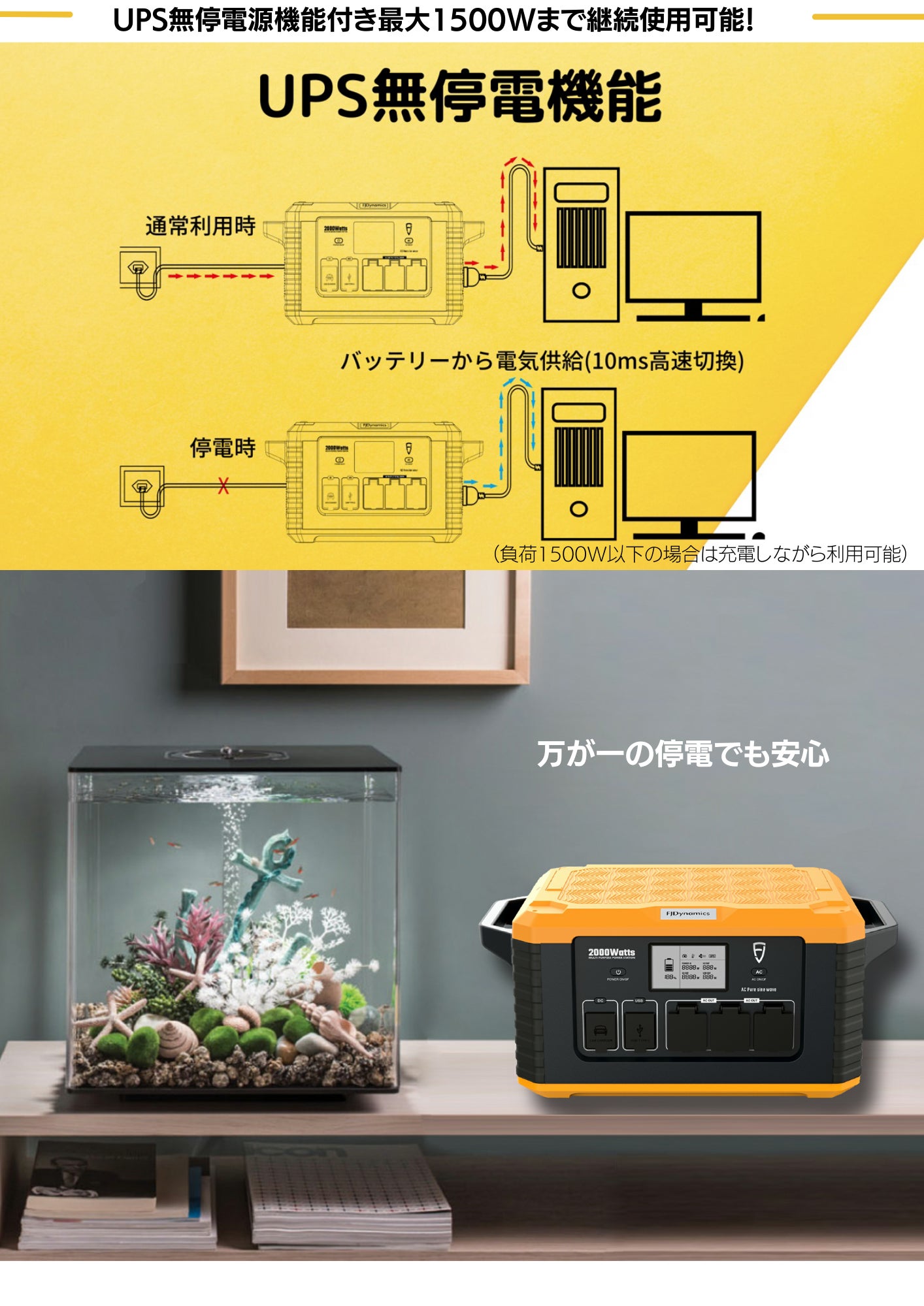【UPS機能搭載、大容量大出力ポータブルバッテリーPowerSec MP2000】