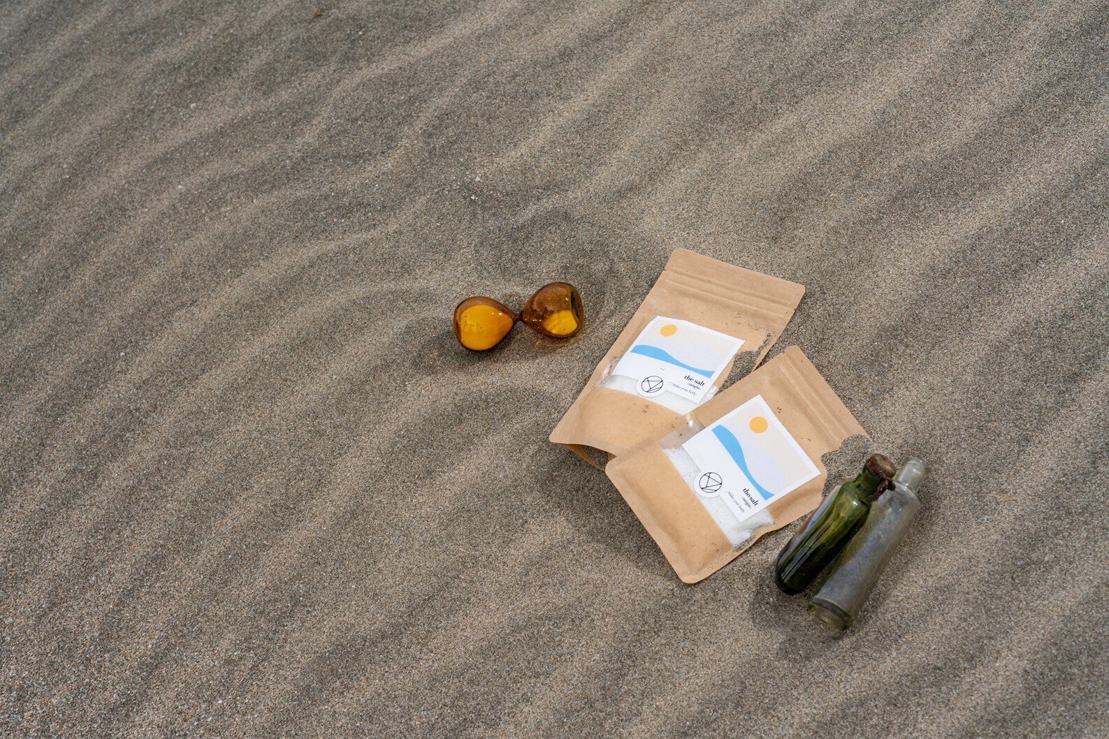 voyageは、originを平釜で煮詰め、途中で加熱を止めた天日塩です。製造の旅の途中で取り出したという意味と、このお塩が皆様の未来の生活へと続いていくという2つの意味を込めました。