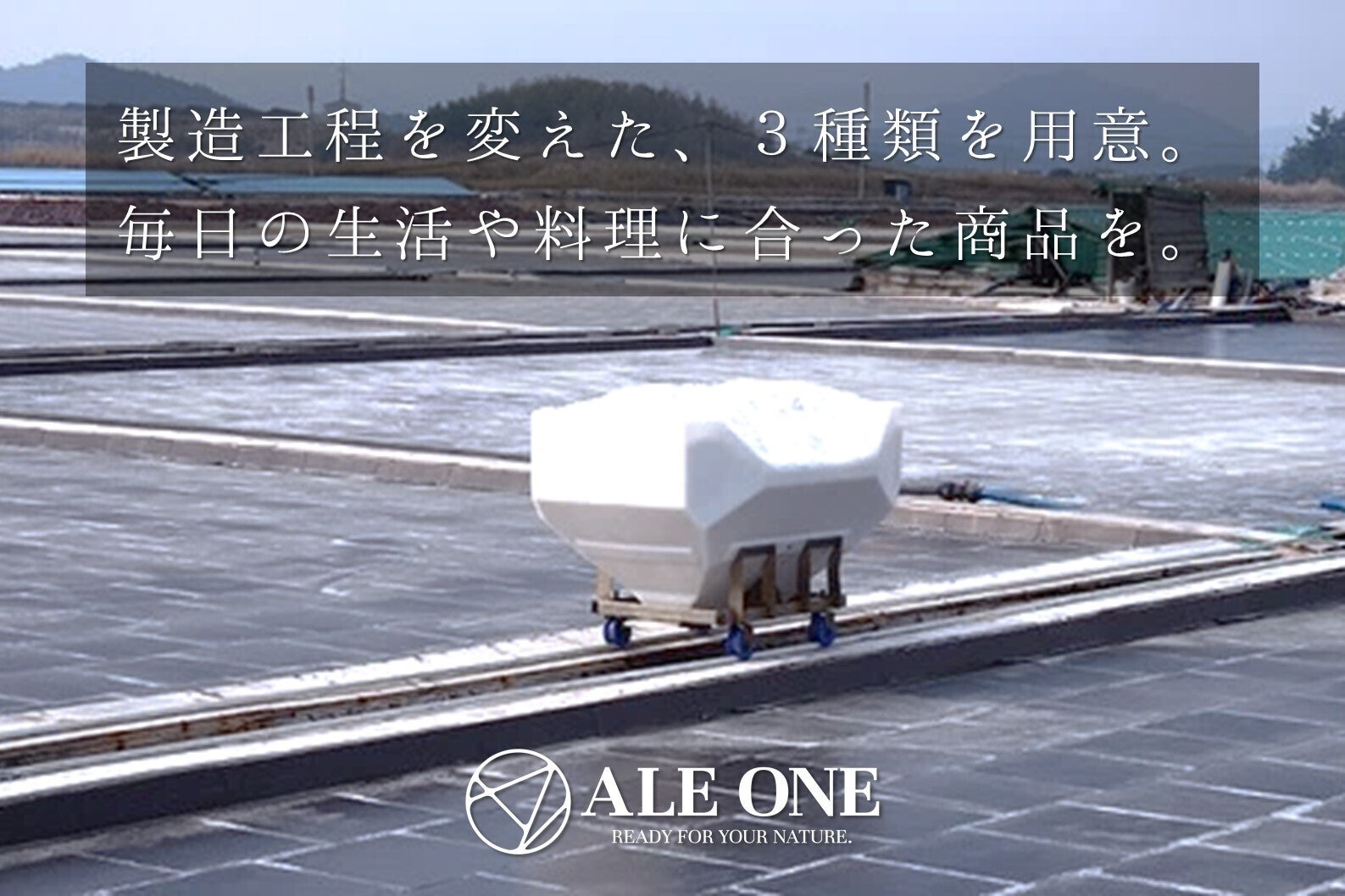 ALE ONEのthe saltは、韓国・木浦の海水を使用したお塩で、その時々の海水に合わせた製法を取っています。是非、「天日塩」と表記されている他のお塩と比較して食べ比べ、使い分けをしてみてください。