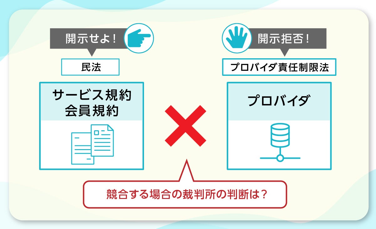 一般消費者向けのサービス規約(会員規約等)とプロバイダー側の開示拒否理由が競合する場合があります。その場合に、裁判所はどちらを優先させるのか、とても興味深い事例を追いかけています。