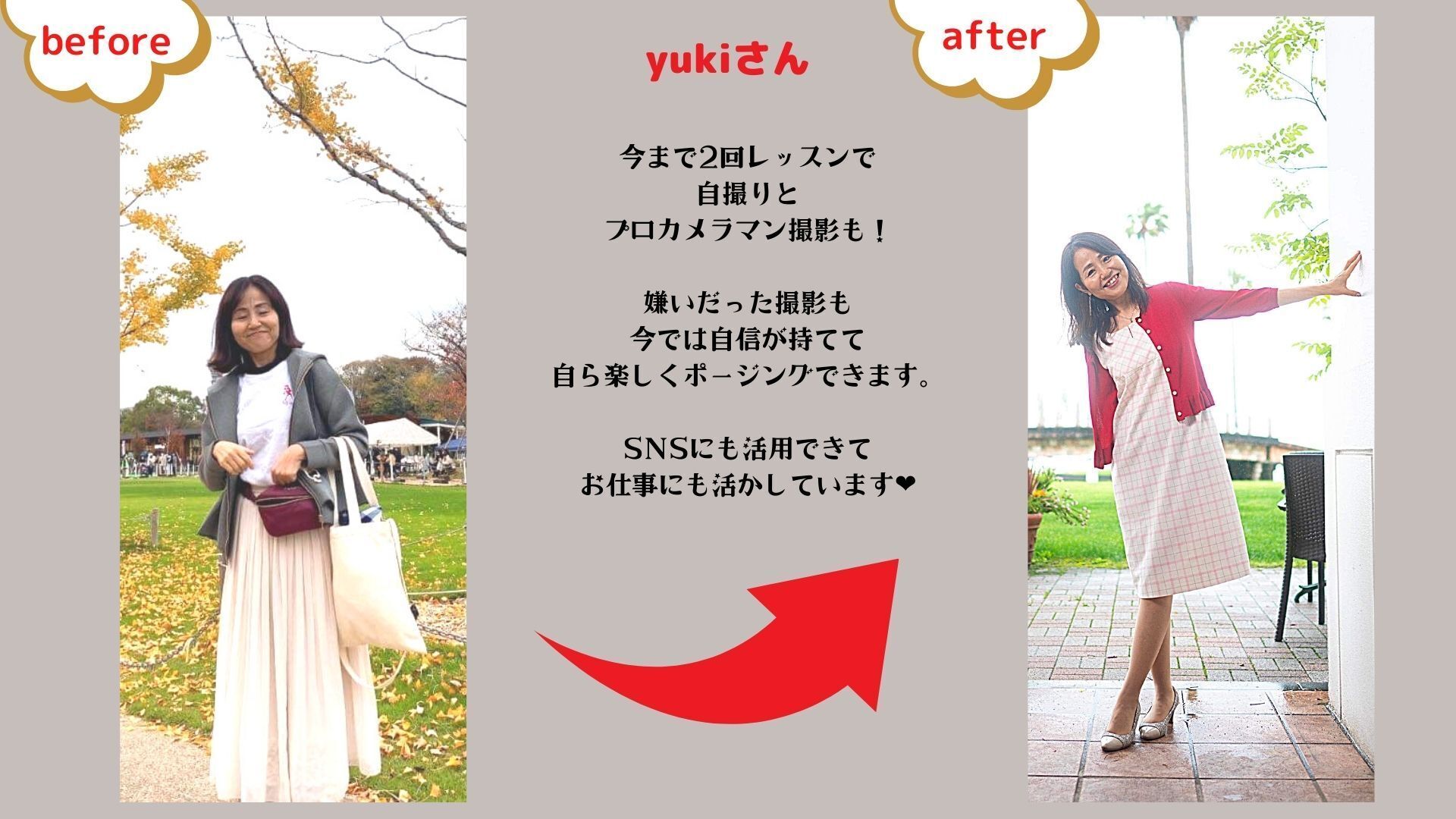 これまでのクライアントさんの変化です!でも、ちょっとしたコツさえマスターすれば、あなたの印象は大きく変わります! 魅せ方のプロであるMIKAが、こうしたテクニックをサロン会員限定の講座で伝授します。