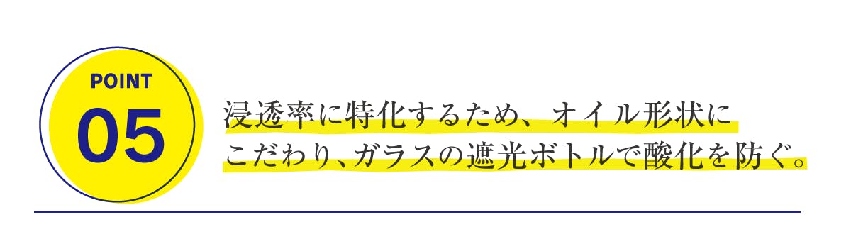シンプルで良いものだけを追求した内容成分にこだわるからこそ、余分なパッケージは廃止しました。浸透率に特化していくためにオイル形状にこだわった美容液です。天然素材のみで保存料を使用しない為、酸化しにくい遮光ボトルのガラス瓶でお届けします。お肌の乾燥具合や使用部位によって使用料を調整しやすいようにスポイト状にし、一滴一滴をお楽しみいただけると思います。